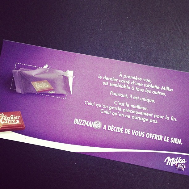 Oh Buzzman m’offre son dernier carré de chocolat. Du coup je l’ai bouffé.